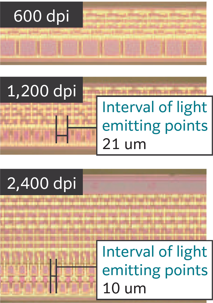 - 分辨率为2,400 × 2,400 dpi的LED打印头