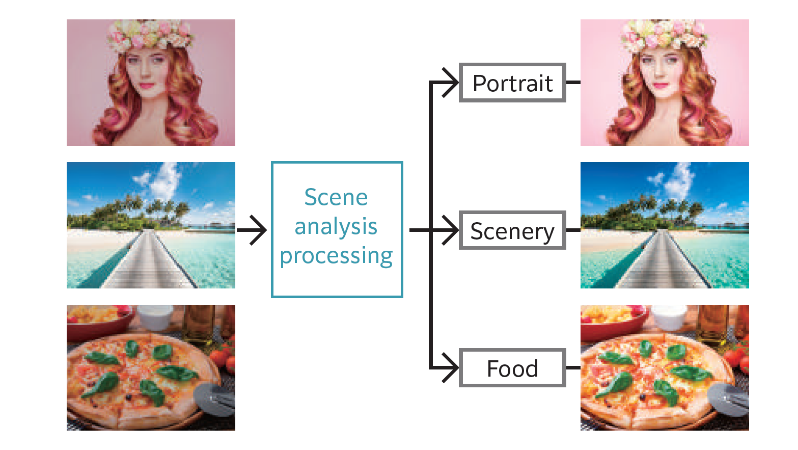 - 能自动*8 识别“人像”、“风景”照片等RGB图像类别,并进行相应校正,打印效果更精美