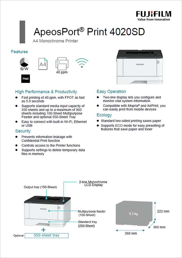 A3黑白打印机,兼具出色的连接性、处理性能和便捷性。